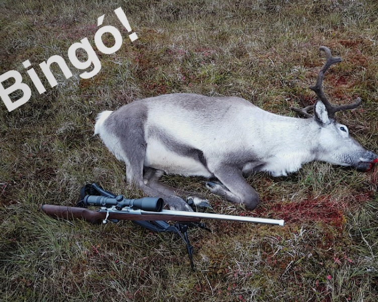 Aðalsteinn (Steini) veiddi tæplega 40 kg. þunga kú með 2 mm. bakfitu hann notaði Russler titan veiðiriffil cal. 6,5-284 og færið var 195 metrar.