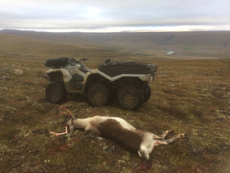 Þar veiddi Sigurfinnur Líndal Stefánsson 53 kg. mylka kú með 20 mm. bakfitu. Hann notaði Mauser 6,5-284 veiðiriffil með 100 gr. Hornady A-Max kúlu og færið var 154 metrar.
