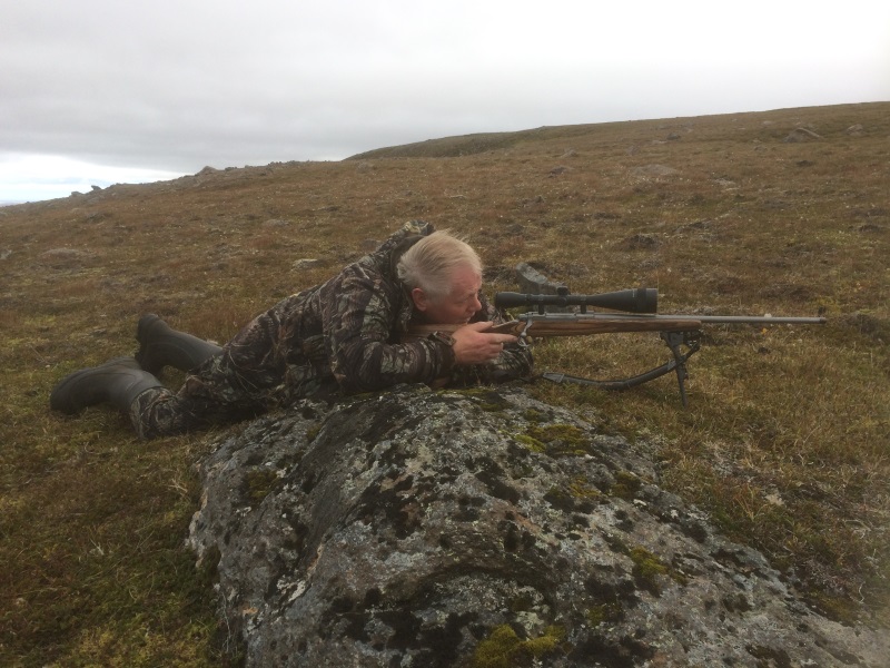 Hann notaði Mauser 12 veiðiriffil sinn beint úr búðinni hjá Jóa Vill, cal. 3006 og færið var um 150 metrar.