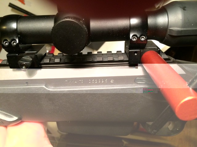 Það er önnur spurning ég er ekki með neitt auka hvorki á Sako eða Tikkuni eins og þú sérð af myndini af Tikkuni þarna í sjónaukaprófununi og á þeim basa er pinni sem gengur ofan í sporið á rifflinum en það eru nú meiri tæknimenn í þessum fræðum en ég hér inni sem geta mögulega komið með snildar svörin