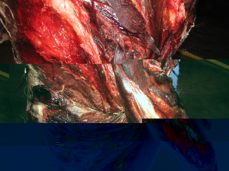Seinna skotið skemmdi miklu minna vegna þess að þá var blóðþrýstingurinn fallinn svo mikið í dýrinu að marið er miklu minna eins og sjá má af myndunum.