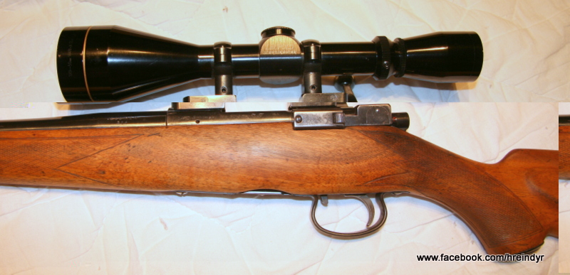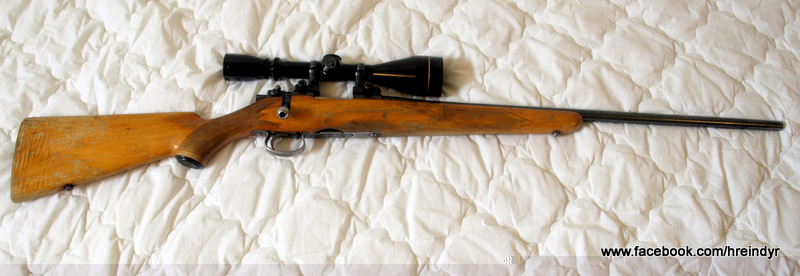 Hér er riffill sem keyptur var að Búnaðarfélagi Berufjarðahrepps einhverntíman á árunum 1970-1980. Fljótlega eyðilagðist hlaupið á honum fyrir trassaskap og þá skipti faðir minn Eyþór Guðmundsson um hlaup á honum. Síðan þá var þetta eini riffillinn sem hann notaði til hreindýra og refaveiða með góðum árangri. Hann var alfarið á móti stærri rifflum þar sem þá voru meiri líkur á að kúlan færi í gegnum dýrið með tilheyrandi kjötskemmdum. Líklega skipta hreindýrin hundruðum sem felld hafa verið með þessum. Sjónaukinn sem notaður var öll árin var Weaver með fasta 2,5 x stækkun og stólpa sigti.