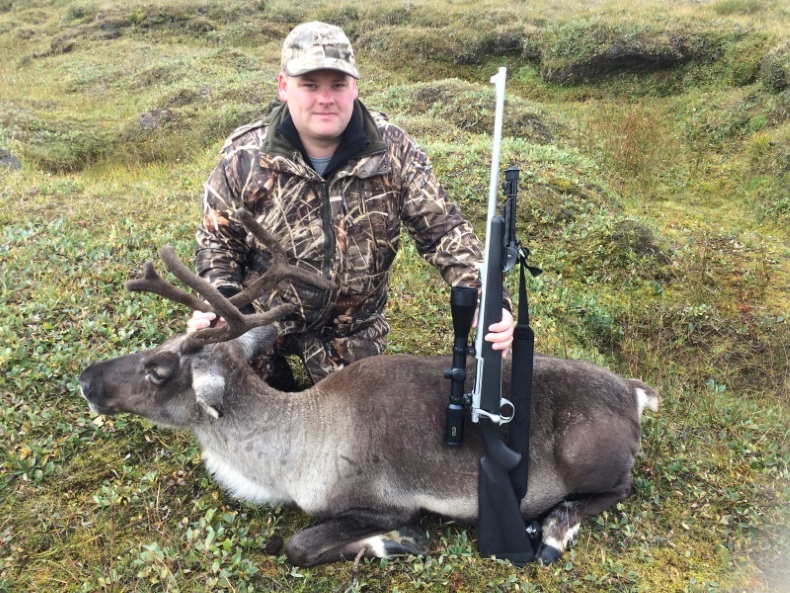 Þar veiddi Aðalsteinn 105 kg. tarf með 40 mm. bakfitu, hann notaði Mauser Domoline, ala Jói Vill veiðiriffil sinn, cal. 6,5-284 hlaðinn 100 gr. A-Max kúlu með 60 gr. af Norma MRP púðri sem gefur um 3500 fet á sekúundu, færið var 144 metrar, skot undir eyrað.