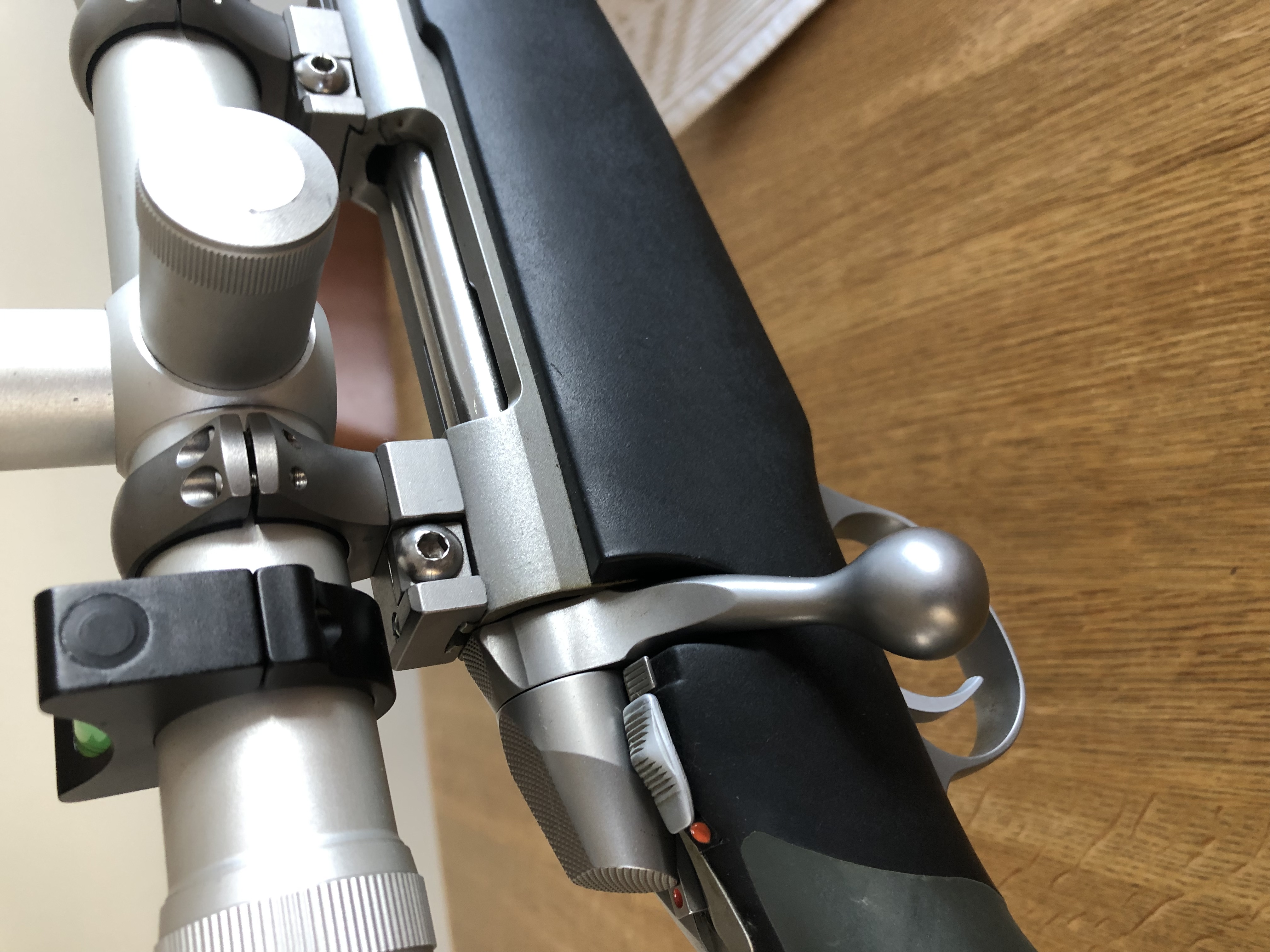Er búinn að komast að því að þetta sé Sako 75 Stainless Synthetic hér eru myndir sem sýna skeptið og lásinn betur