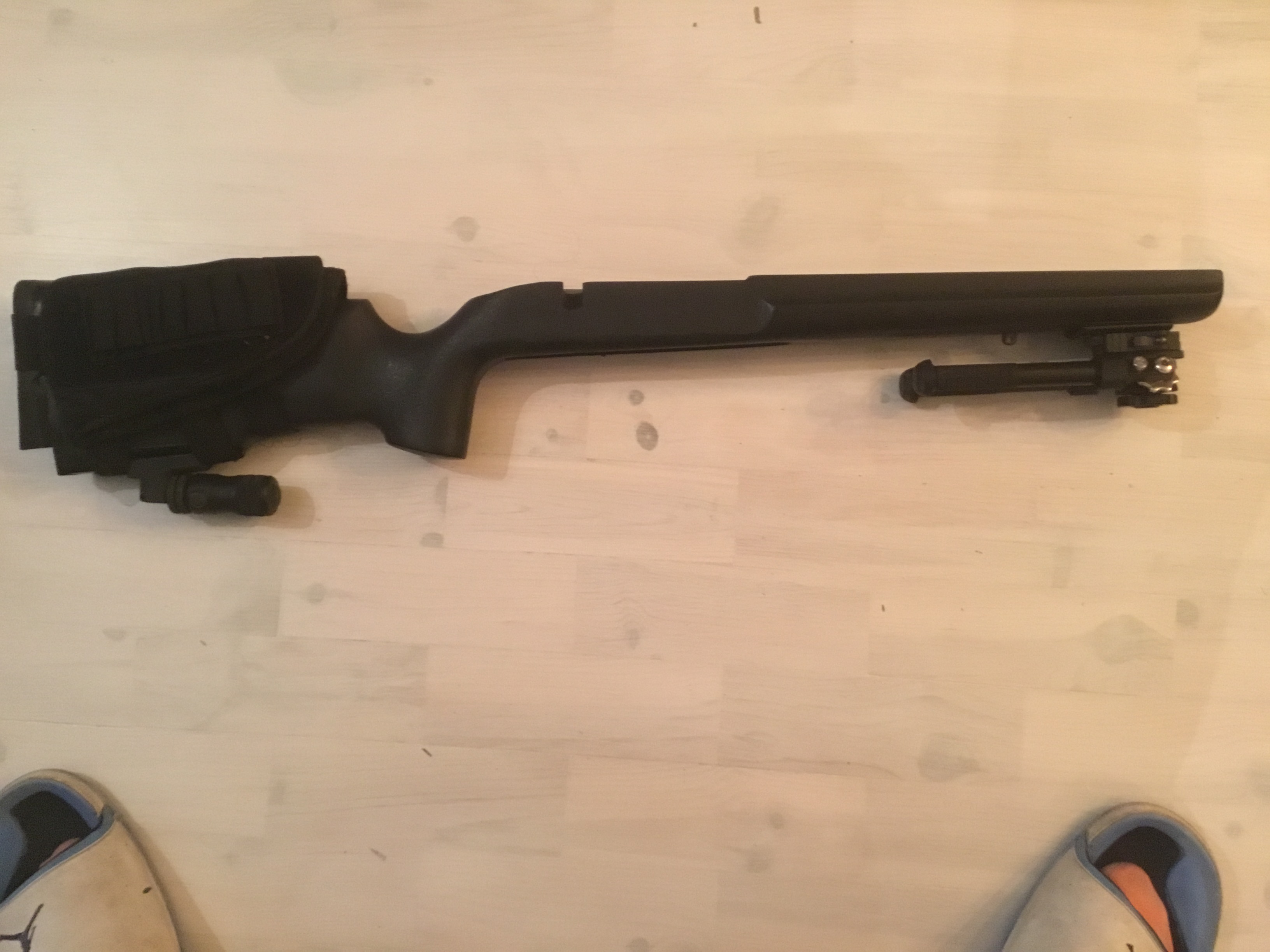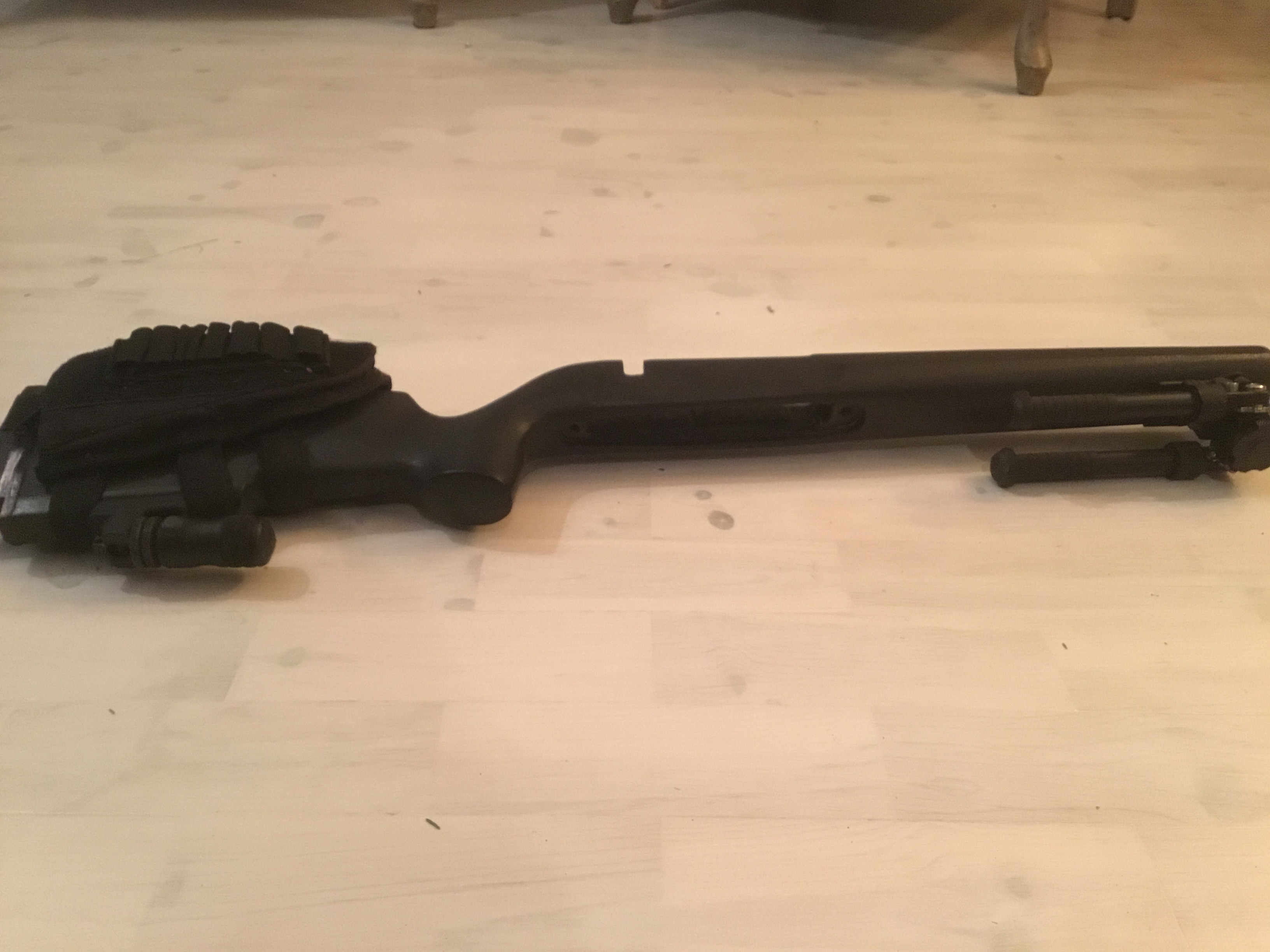 Er með Boyd's tactical skepti fyrir tikku t3, úr límtré svart, beddað af Arnfinni með stillanlegir hæð á bakslagspúða og hækkuðum kinnpúða með smá geimsluhólfi og skotahólfum. Er með eftirlíkingu af atlas tvífót sem er ágætur. Verð 30.000kr.