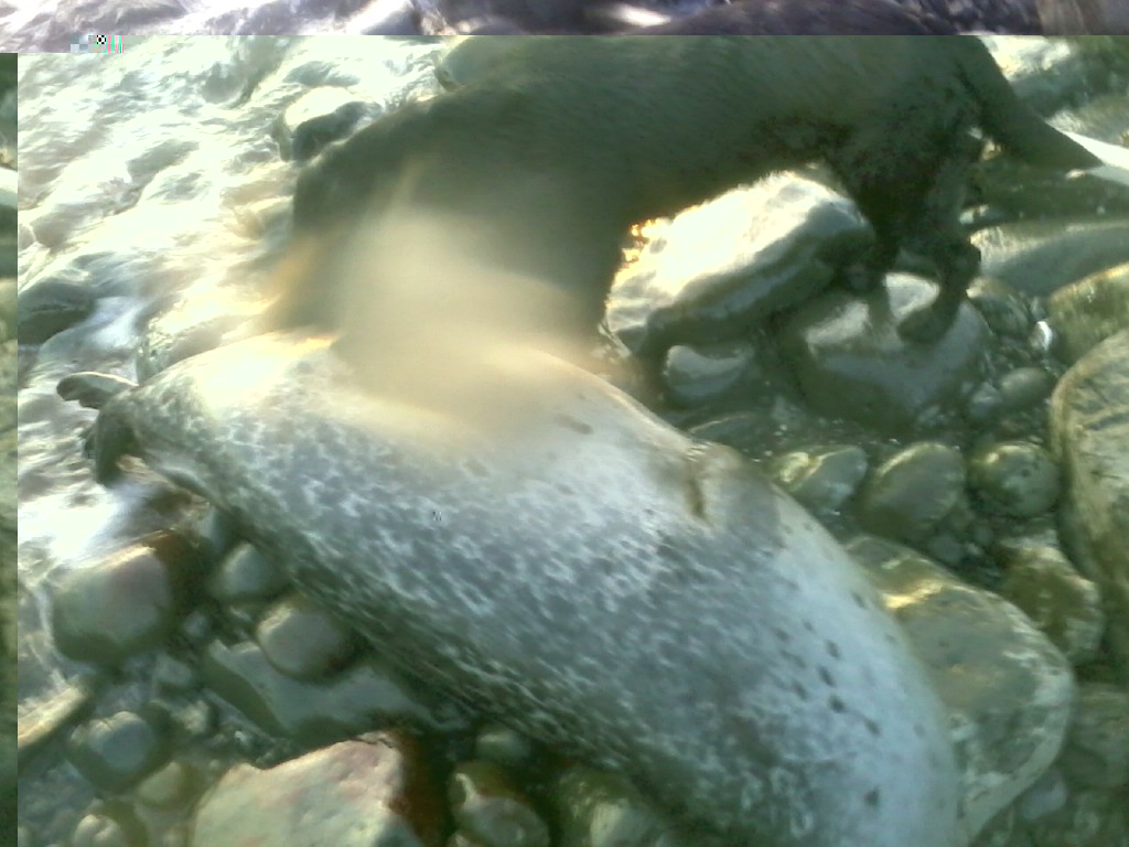 Flottir hundar hjá þér og Sigurður ég ætla að senda þér 3 myndir úr símanum mínum til að gefa þér hugmynd um hvernig kúlan fer með kobba og stærð á miðju dýrinu og svo tíkini að koma inn þá selurinn sáist líklega ekki í öldurótinu.